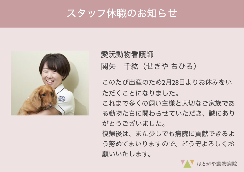 スタッフ休職のお知らせ